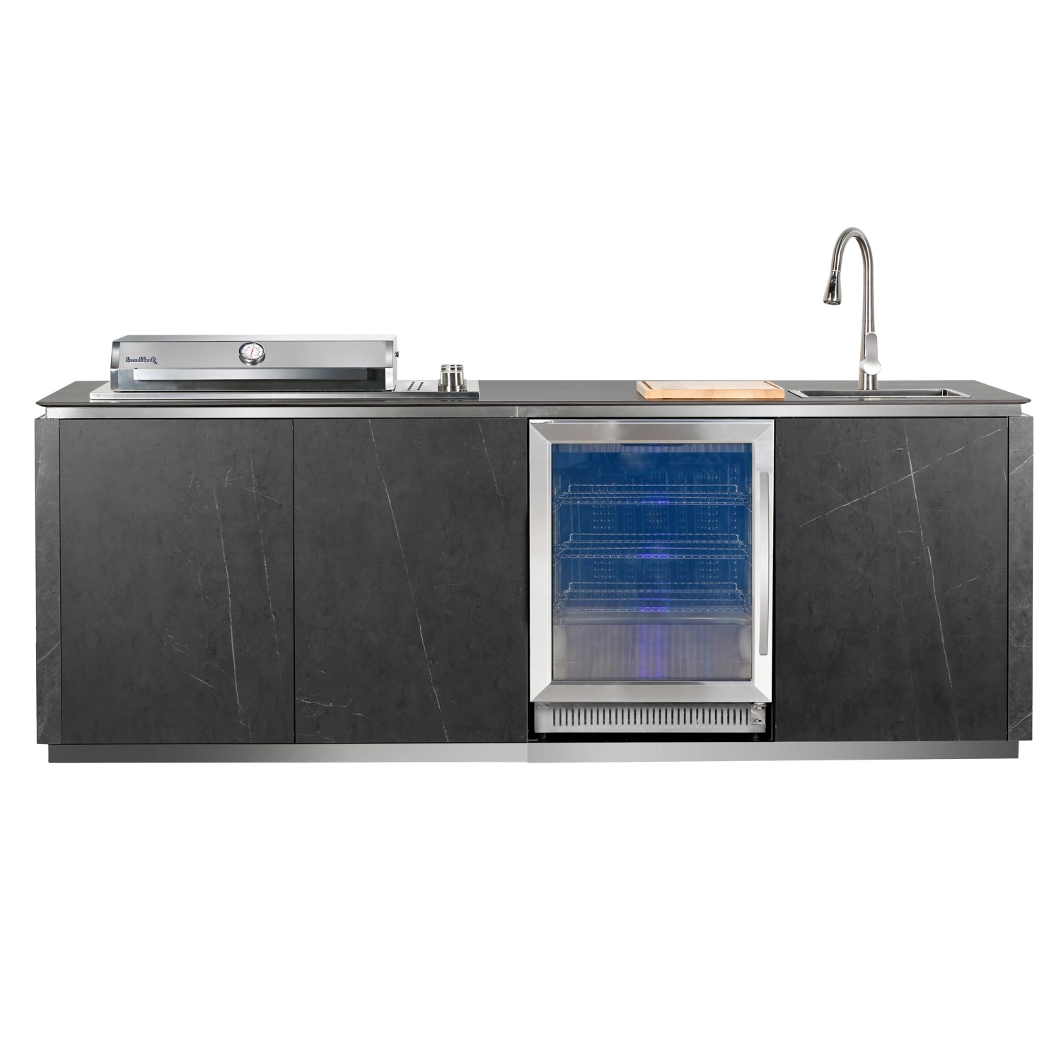 Buschbeck Outdoorküche Derby aus Keramikverkleidung Weiß inkl. Wetterschutzhülle