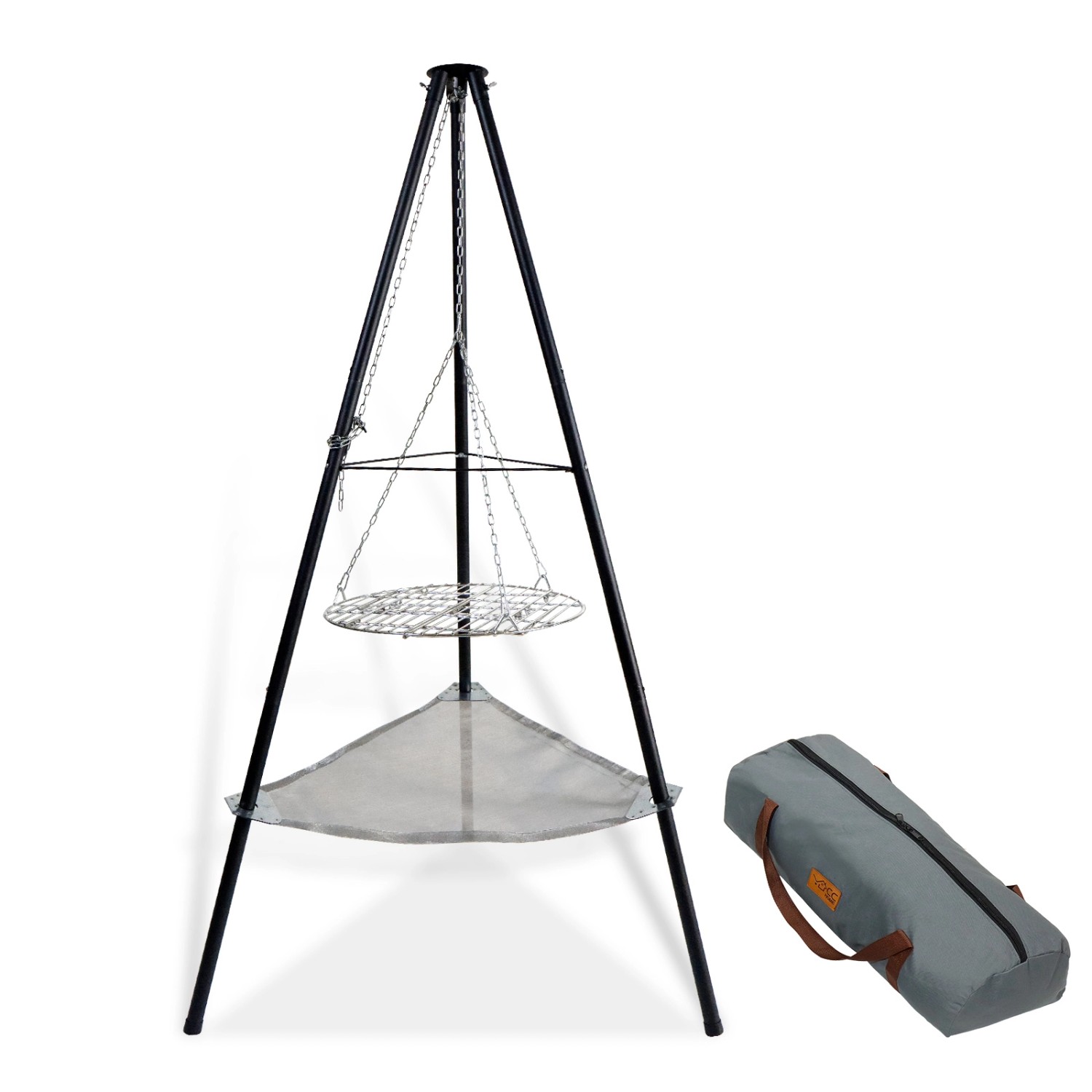 CCLIFE Schwenkgrill mit Grillrost und Feuernetz 166cm Hoch Drehbar Rutschfester Tragbarer