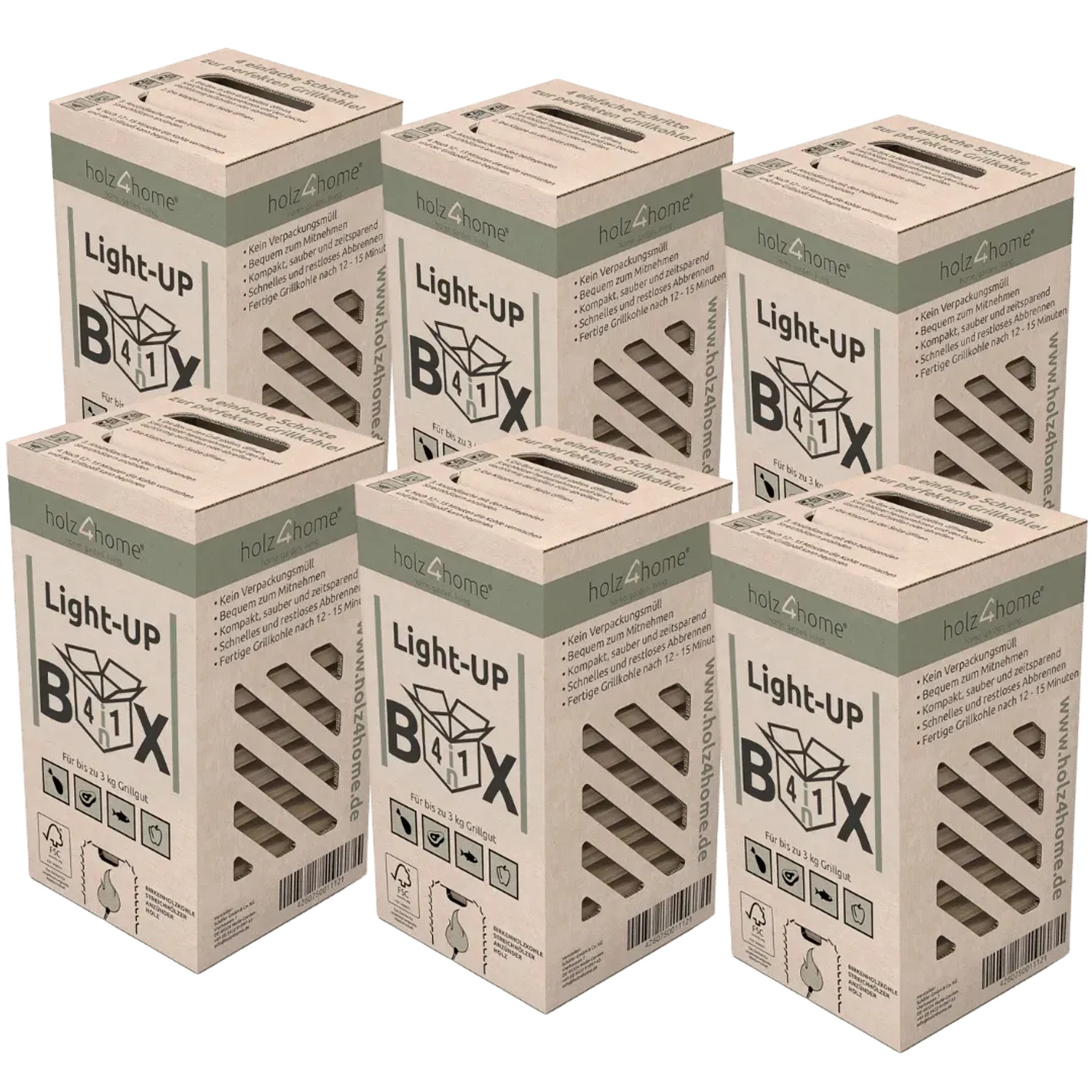 holz4home 6er SET Grillkohle Premium Light UP Box 4in1 Grillanzünder Grillkohle