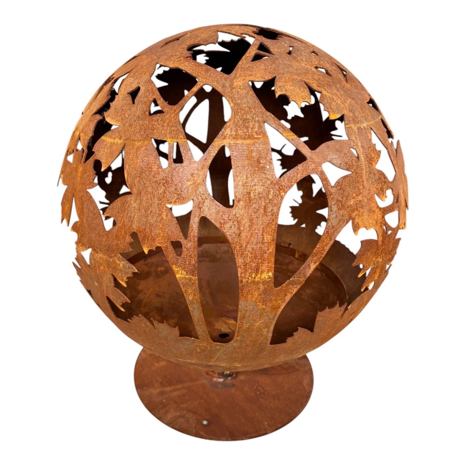 Jet-Line Feuerstelle World in Rostoptik Ø 58cm in Kugelform mit Blattmotiv