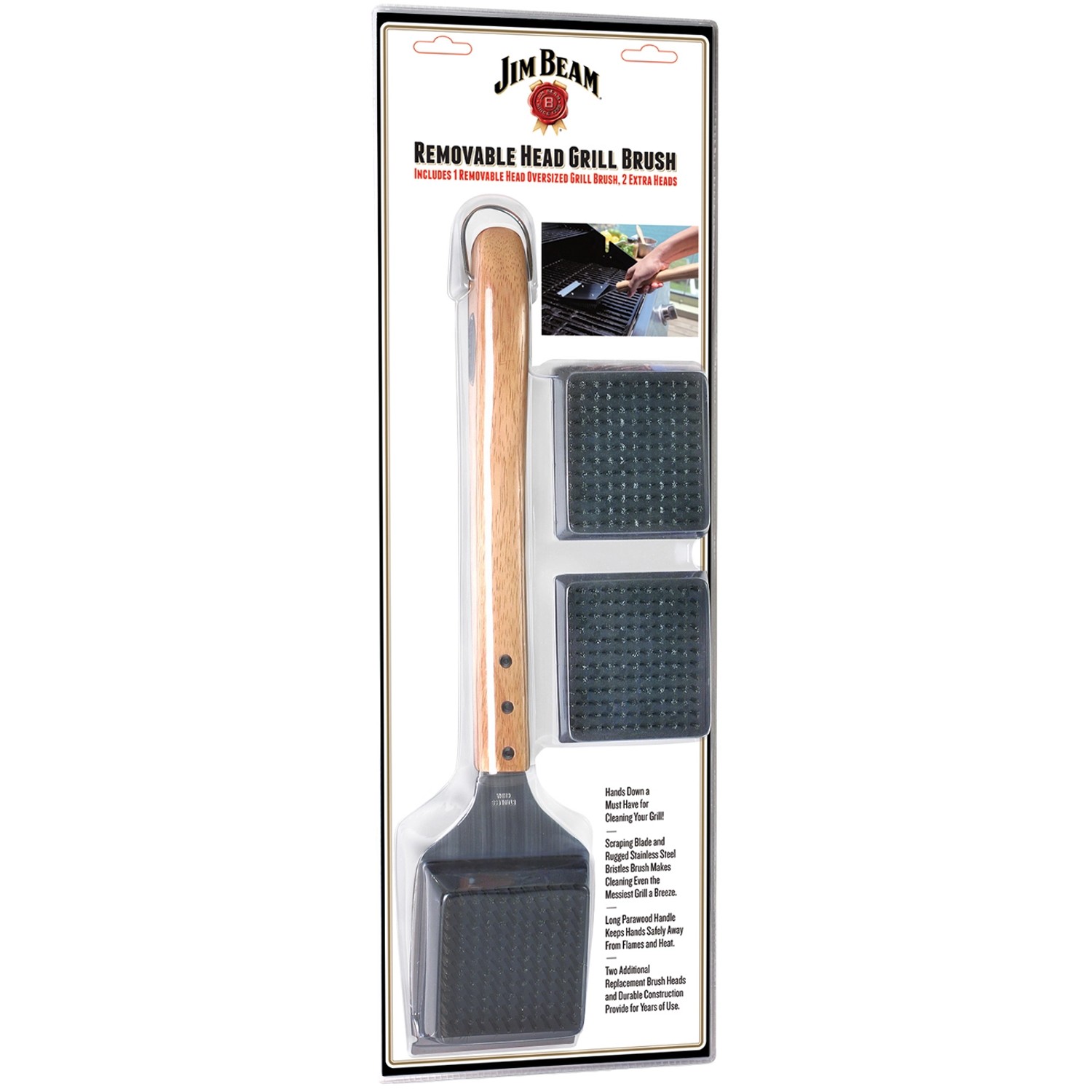 Jim Beam Grillbürste Edelstahl Holzgriff Parawood Inkl. 2 Wechselköpfe