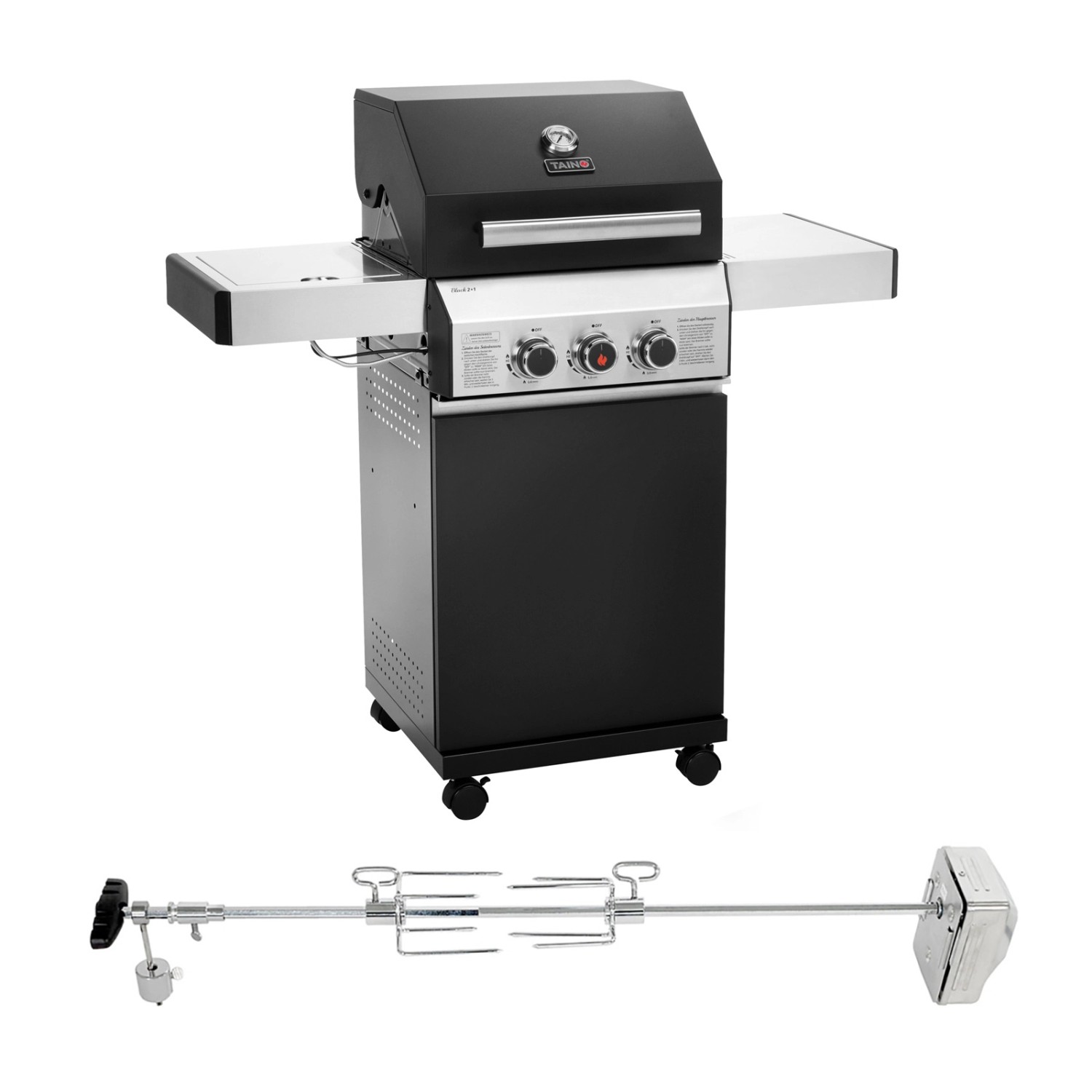 Taino Black 2+1 + Drehspieß-Set Gasgrill Mit Seitenbrenner Gasgrill 2 Brenner Matt Schwarz