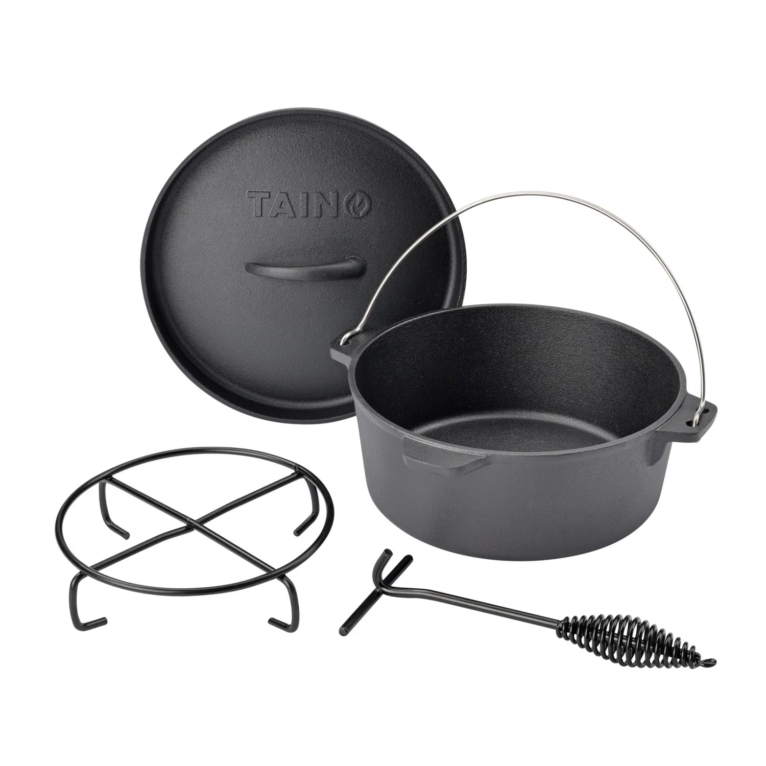 Taino Dutch Oven 4L Gusseisen Feuertopf Deckelheber Grillzubehör Dopf