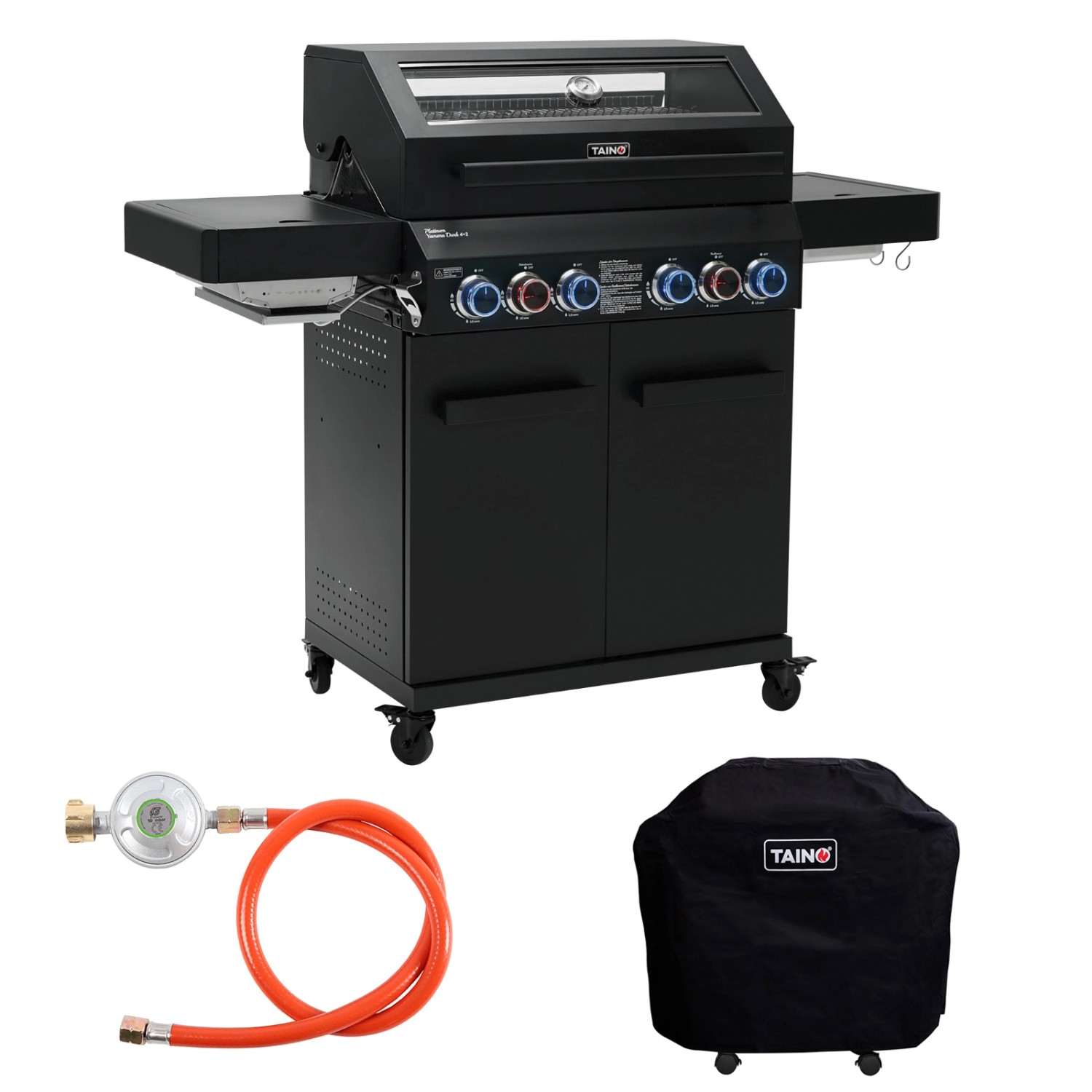 Taino Platinum Yamara Dark 4+2 Set Mit Haube Gasgrill Stahl 4 Brenner Sear-Burner Backburner